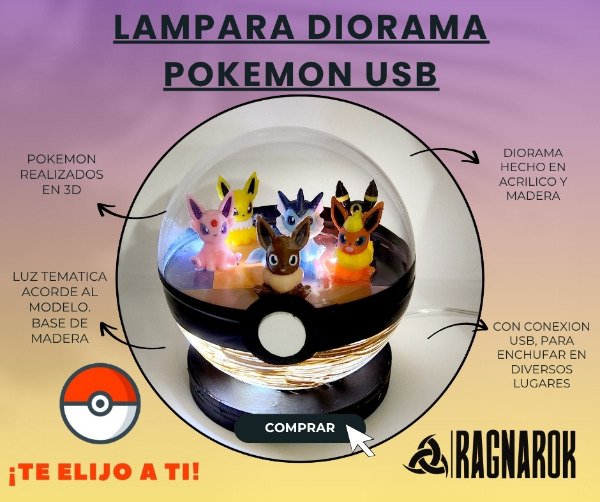 Lampara Diorama Pokemon Eevee y evoluciones Cable Usb