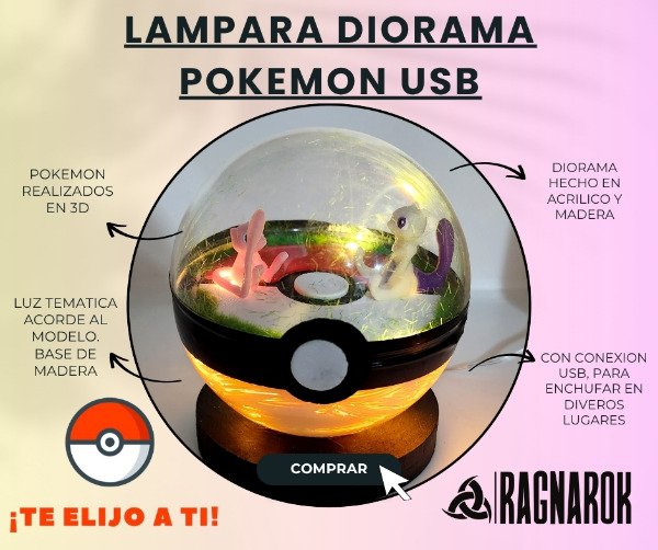 Lampara Diorama Pokemon Mew Mewto Cable Usb