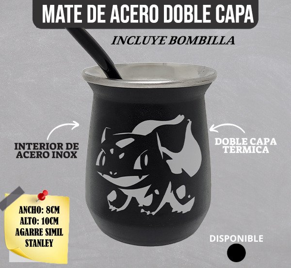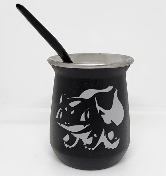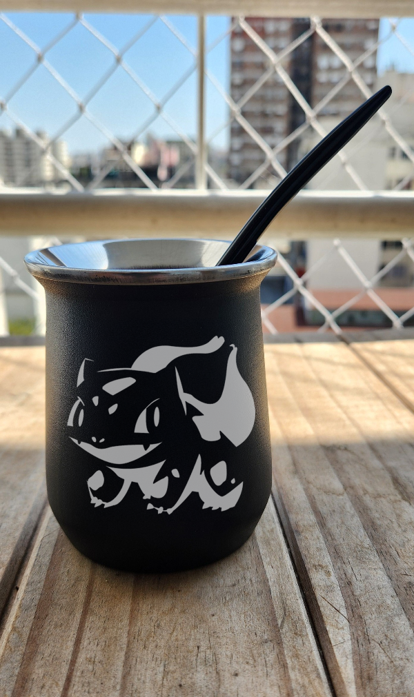 Mate De Acero Simil Stanley Con Bombilla Bulbasaur Pokemon