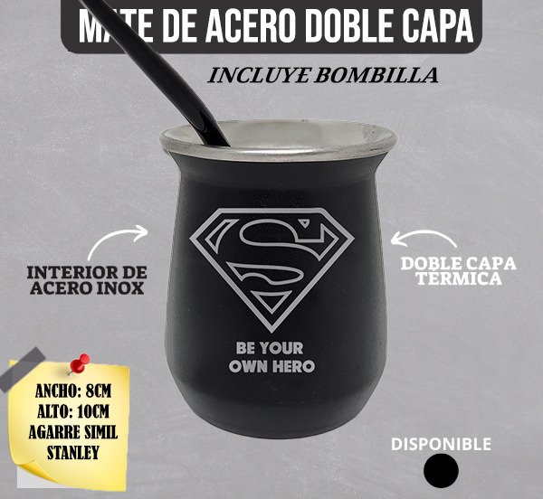 Mate De Acero Simil Stanley Con Bombilla Superman Heroe