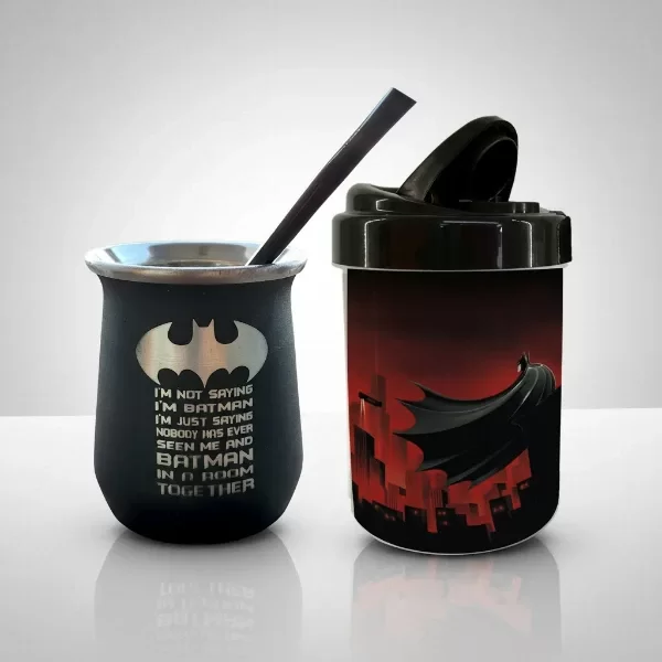 Mate De Acero Pack Batman Grabado Y Bombilla + Yerbero