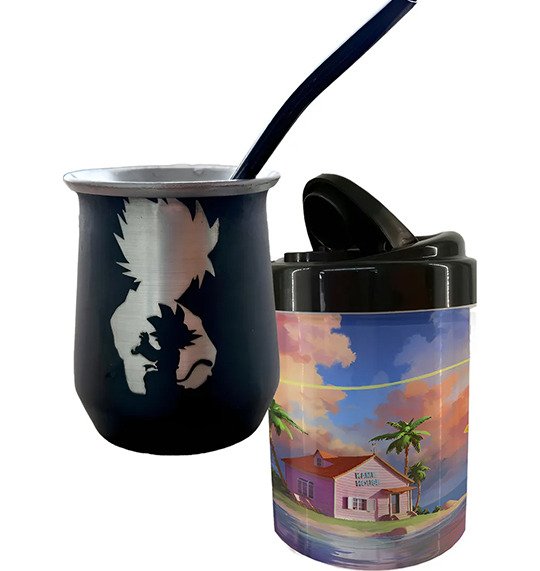 Mate De Acero Pack Dragon Ball Grabado Y Bombilla + Yerbero
