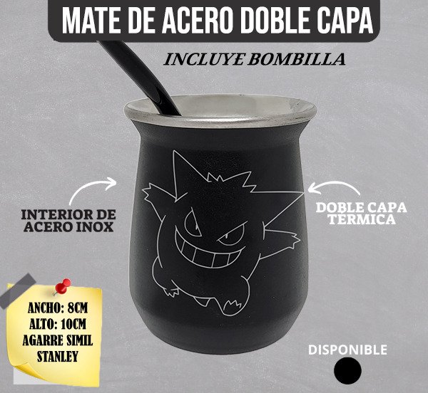 Mate De Acero Simil Stanley Con Bombilla Gengar pokemon